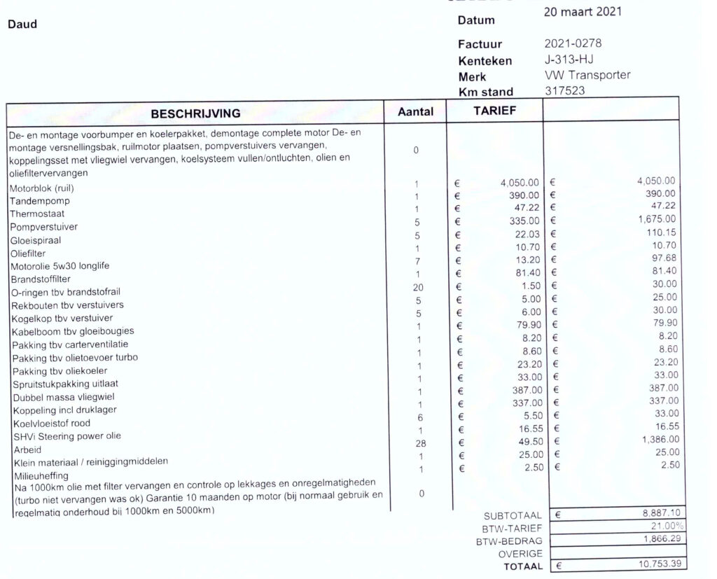 Ik zag via google reviews iemand informeren naar een T5 motor die het zelfde bedrijf aanbood op marktplaats. Een die 210.000 km gelopen zou hebben, ze vroegen inclusief inbouw 42000 euro. De klant vroeg naar garantie, waarop hij het antwoord “hij is verkocht” kreeg.